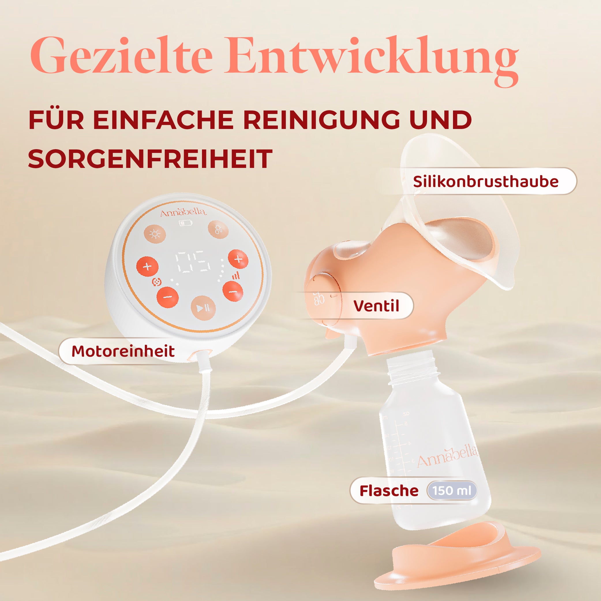 Die innovative Zungenstimulationstechnologie von Annabella unterstützt den natürlichen Milchfluss und sorgt für mehr Komfort beim Abpumpen.