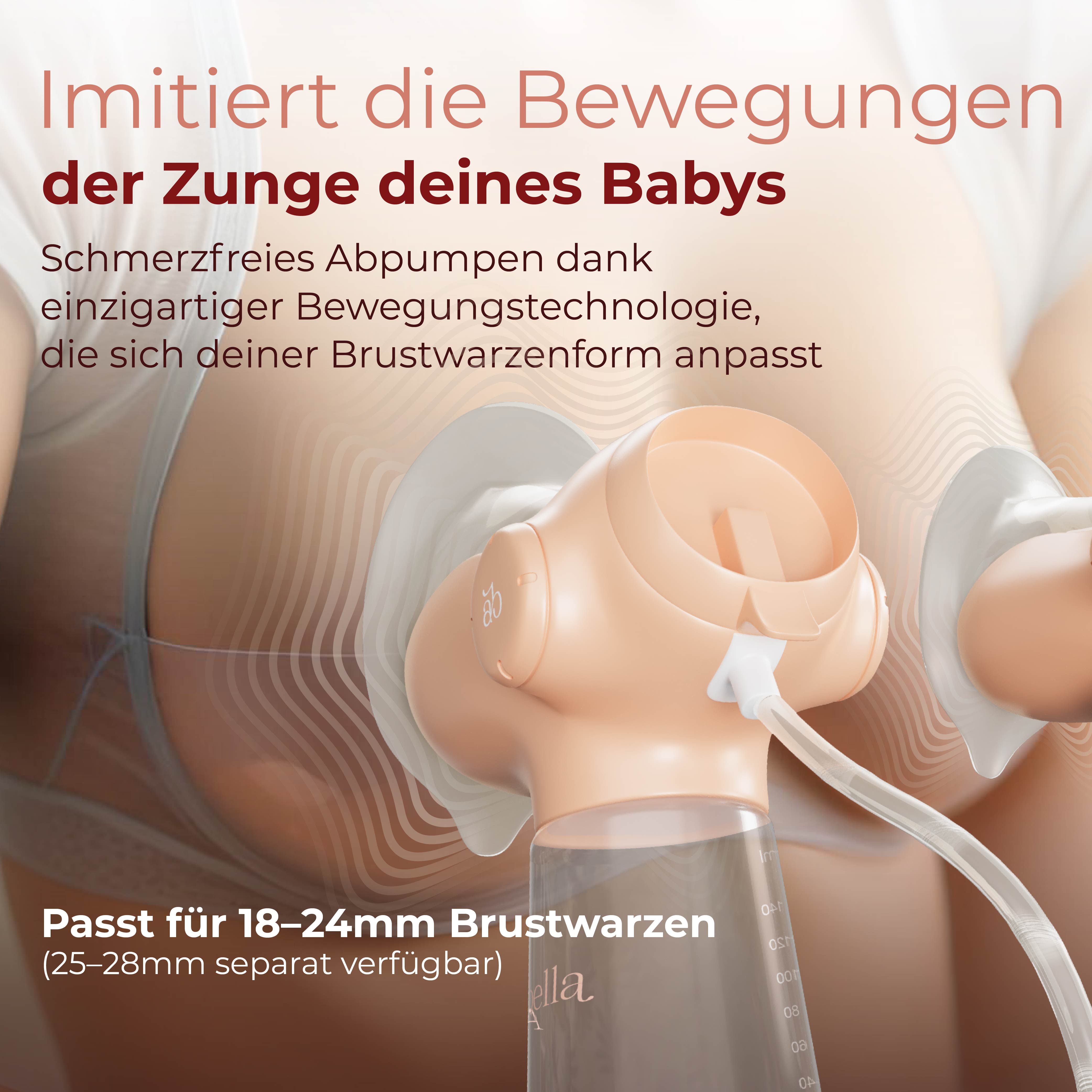 Die innovative Bewegungstechnologie passt sich deiner Brustwarzenform an und ermöglicht ein besonders sanftes, nahezu schmerzfreies Abpumpen – für maximalen Komfort bei jeder Session.