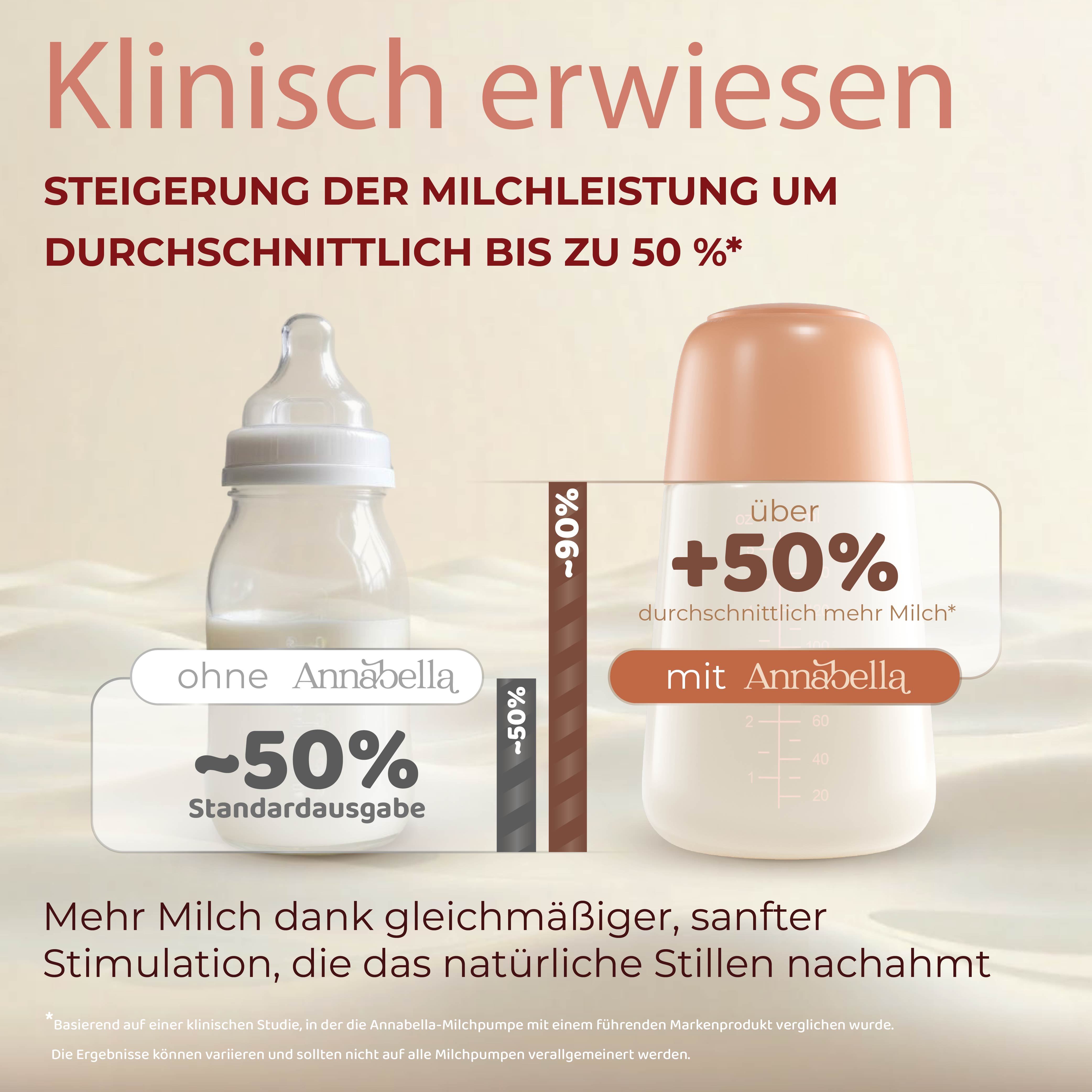 In einer kontrollierten klinischen Studie erreichten Teilnehmerinnen mit Annabella im Durchschnitt eine deutlich höhere Milchmenge als mit herkömmlichen elektrischen Milchpumpen.